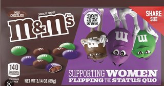 (6,017 posts)"This move [A special edition package with only women M&M's on it, including the new Purple one] is the latest in a series of marketing moves M&s has made to promote inclusivity. Its previous announcement involved the introduction of the purple female M&M who represents body positivity and self-acceptance.