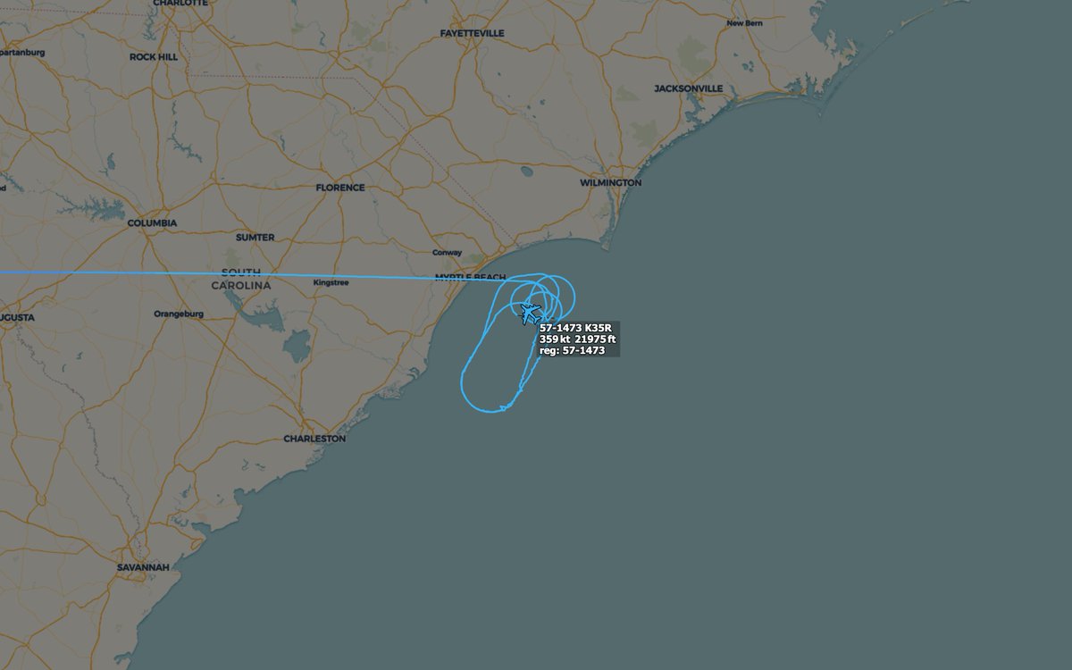 USAF F-22s FRANK01 & 02 launched from Langley AFB, VA joining up with KC-135R #AE04B3 57-1473 GASMN02 for aerial refueling.