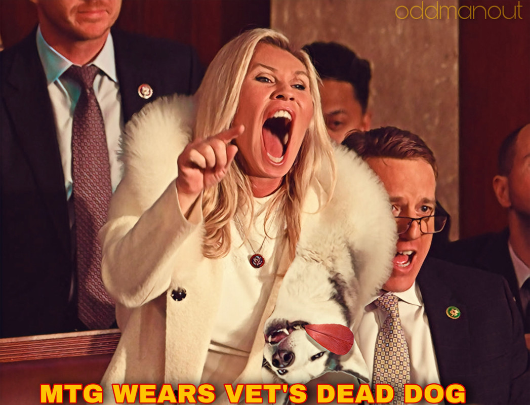 (5 posts)MTG wears the vets dead dog that Santos killed to the State of the Union.