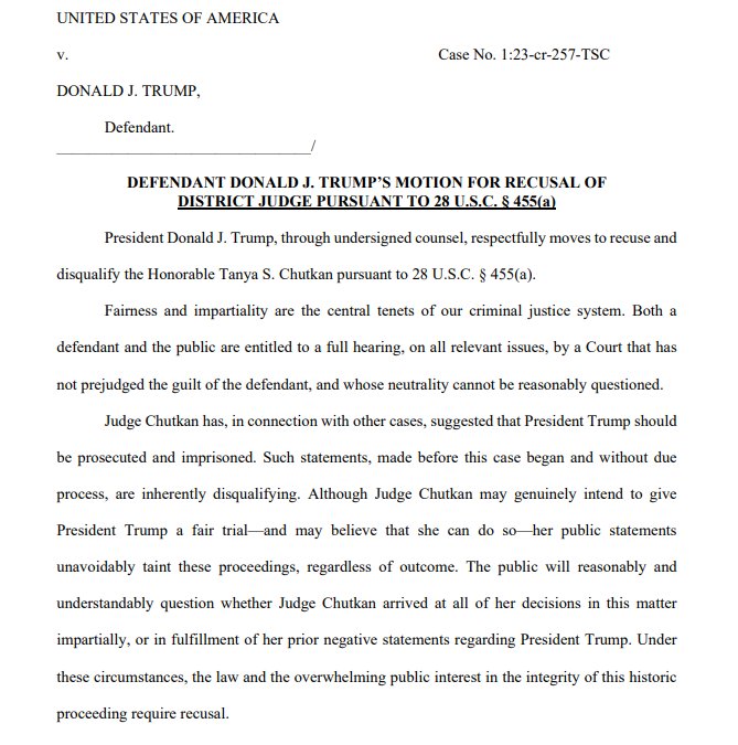 Read more: https://www.cbsnews.com/news/trump-asks-judge-tanya-chutkan-jan-6-case-to-recuse-herself/