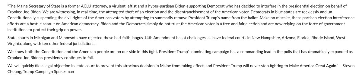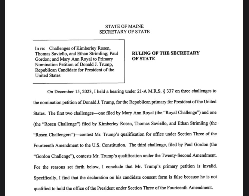 Read more: https://www.cnn.com/2023/12/28/politics/trump-maine-14th-amendment-ballot/index.html