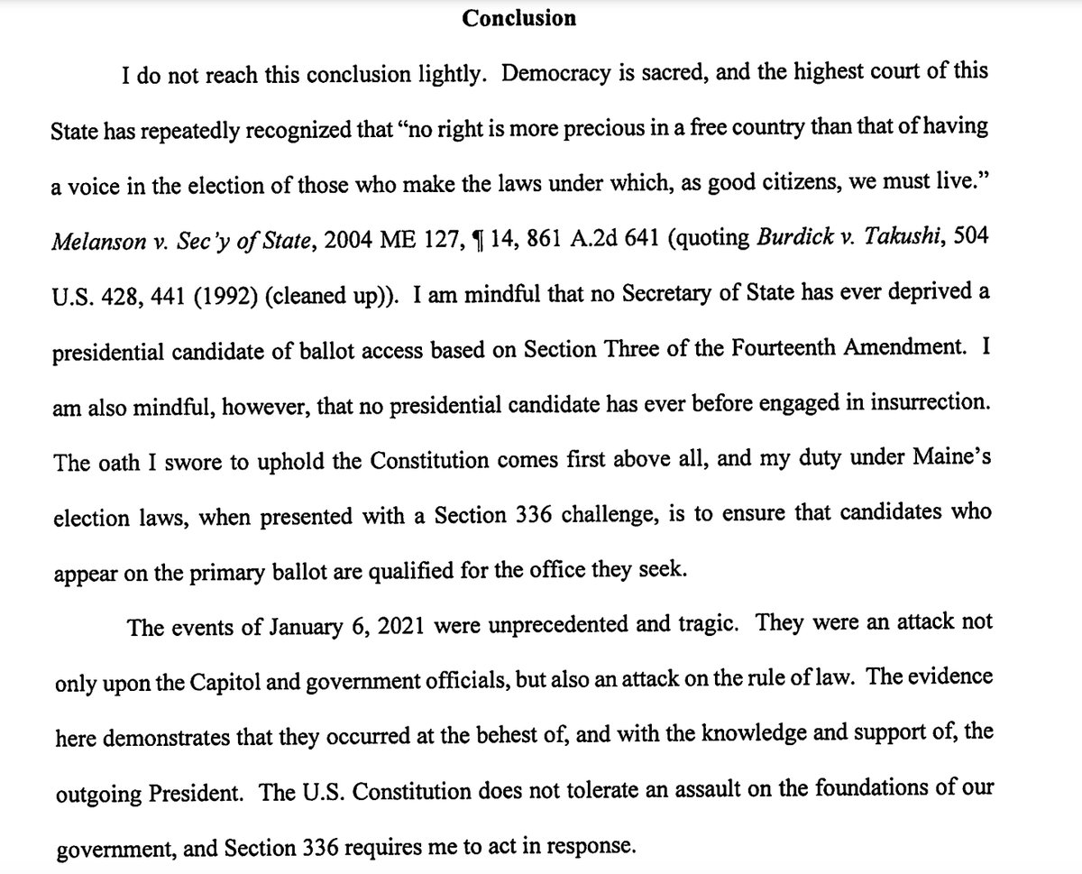 (23,399 posts)"I find that the declaration on this candidate consent form is false because he is not qualified to hold the office of the President under Section Three of the Fourteenth Amendment."