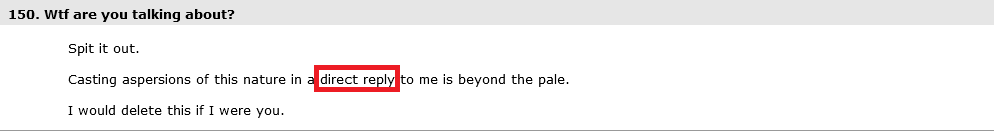 Casting aspersions of this nature in a thread response to me is beyond the pale.