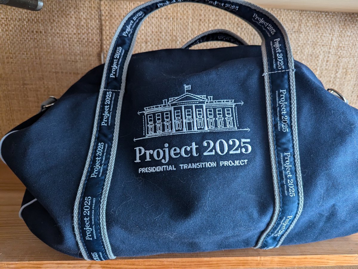 Here is an excerpt from the referenced WaPo reporter who did a follow-up story - https://www.washingtonpost.com/style/media/2024/08/16/project-2025-dc-duffel-bag/