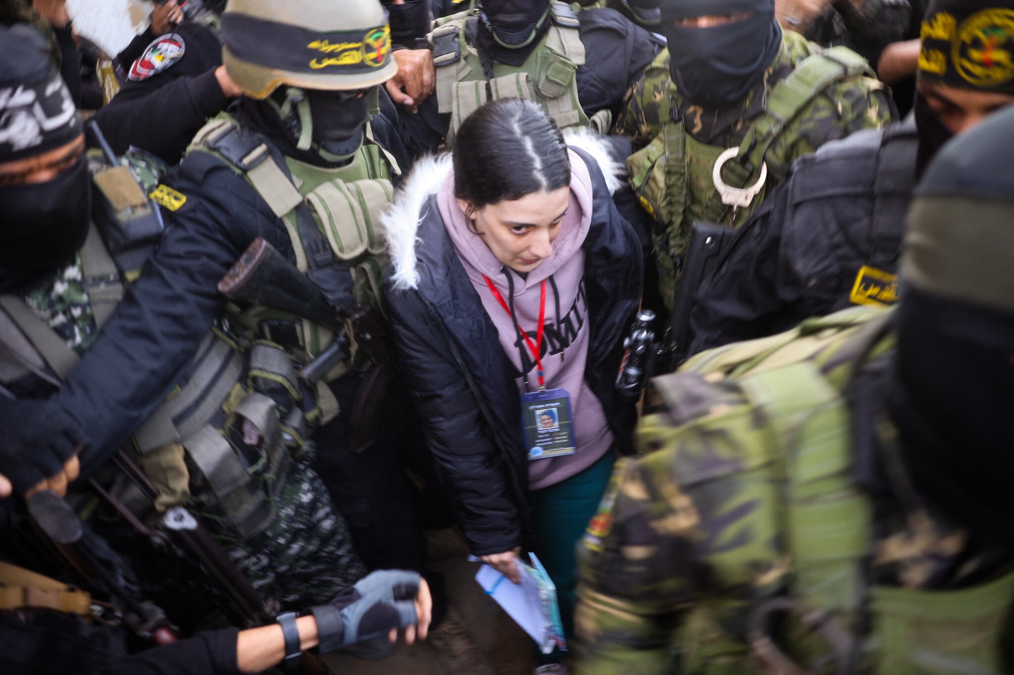 The first hostage, female Israeli soldier Agam Berger, was released in northern Gaza. Hours later, a chaotic scene unfolded as thousands of people pressed around a handover site in the southern Gaza city of Khan Younis, in front of the destroyed home of slain Hamas leader Yahya Sinwar.