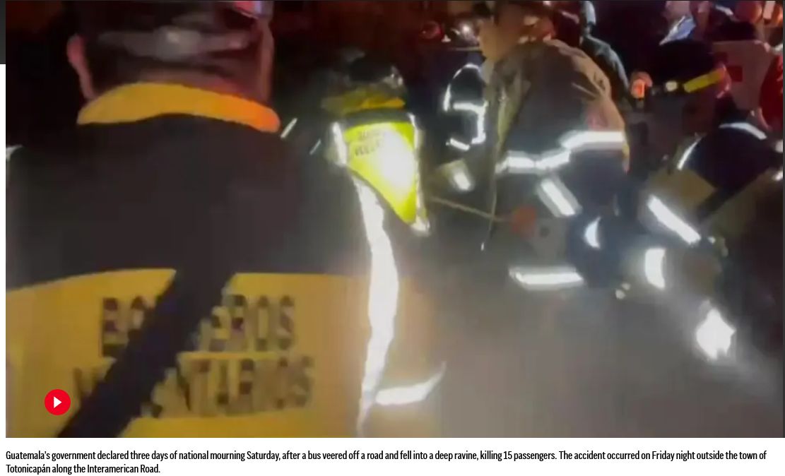 Bus accident leaves 15 dead in Guatemala and government declares 3-day national mourning period