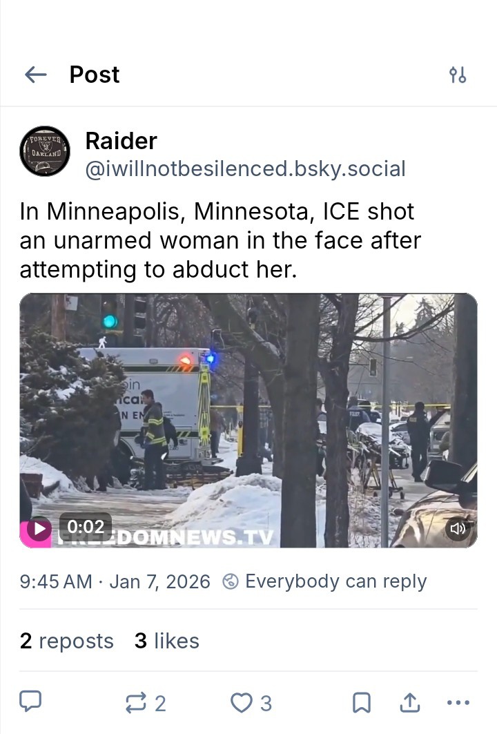 (19,313 posts)NEW: Second video shows ICE shooting in Minneapolis. A woman, a U.S. citizen, was killed