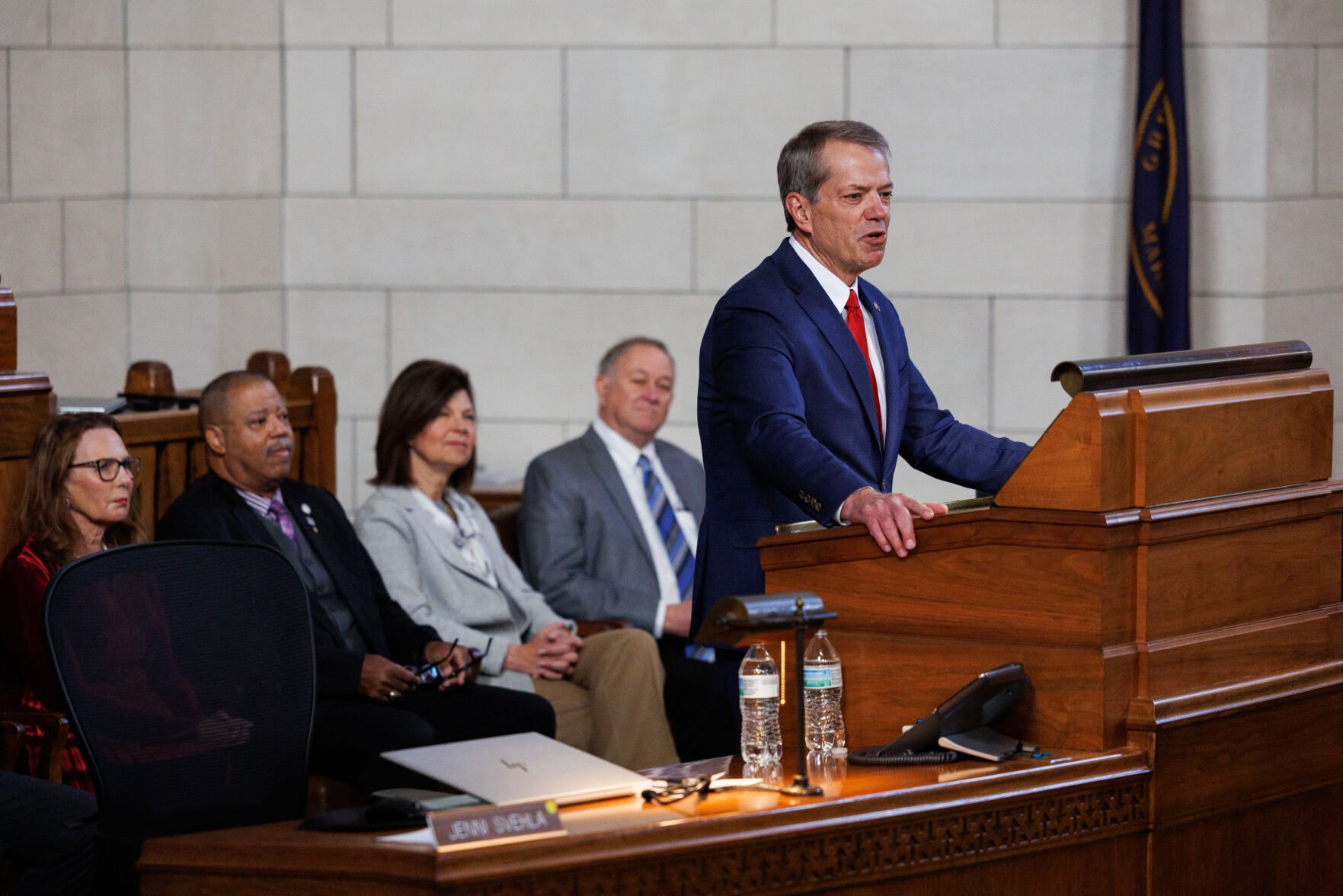 Gov. Jim Pillen delivers his annual State of the State speech in the legislative chamber of the Nebraska State Capitol in Lincoln on Thursday, Jan. 15, 2026.