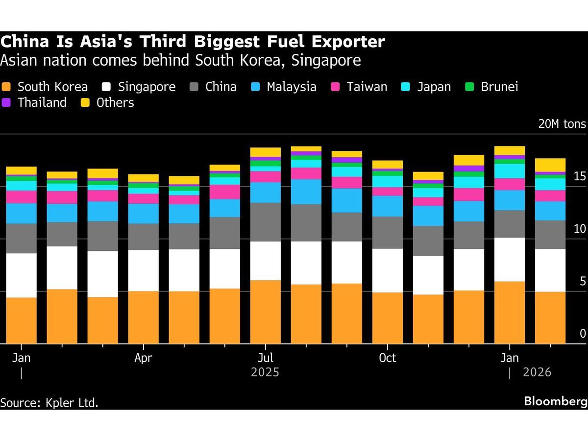 (Bloomberg) -- China's government has told the country’s top oil refiners to suspend exports of diesel and gasoline as an escalating conflict in the Persian Gulf disrupts the arrival of crude from one of the world’s largest producing regions.