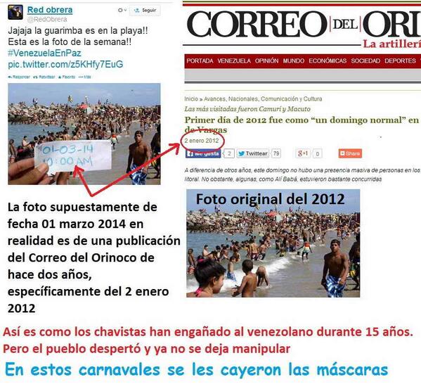 And of course, the Maduro crew is trying to pretend that everyone is taking his advice and going to the beach, and they're even posting proof ... proof which was easily debunked. You'd think they'd join the 21st Century--this is pretty pathetic: