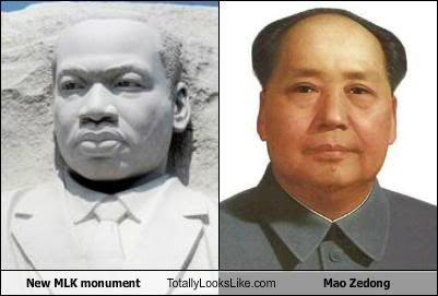 (135,425 posts)Her theory is that they made the MLK statue so clunky and ugly because, when the Chinese take over the world, it will be easy to carve the thing down slightly and change the face from a bad version of MLK to Mao! Mao on the Mall, she says! It's coming!