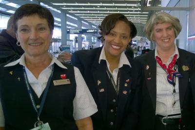 American Airlines passenger service agents Cassandra Rosenbach, Sherri Chatmon, and Lisa Cooper pose at Chicago's O'Hare Airport. Agents at the newly merged airline finish voting today on union representation. Photo: CWA. - See more at: http://www.labornotes.org/2014/09/new-union-vote-new-american-airlines#sthash.KAaZbtVE.dpuf