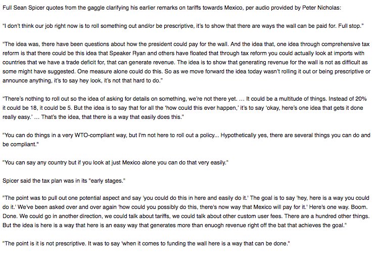 .@PressSec clarifies remarks on Mexico tariff, says they werent supposed to be prescriptive," from the pool report I just filed: