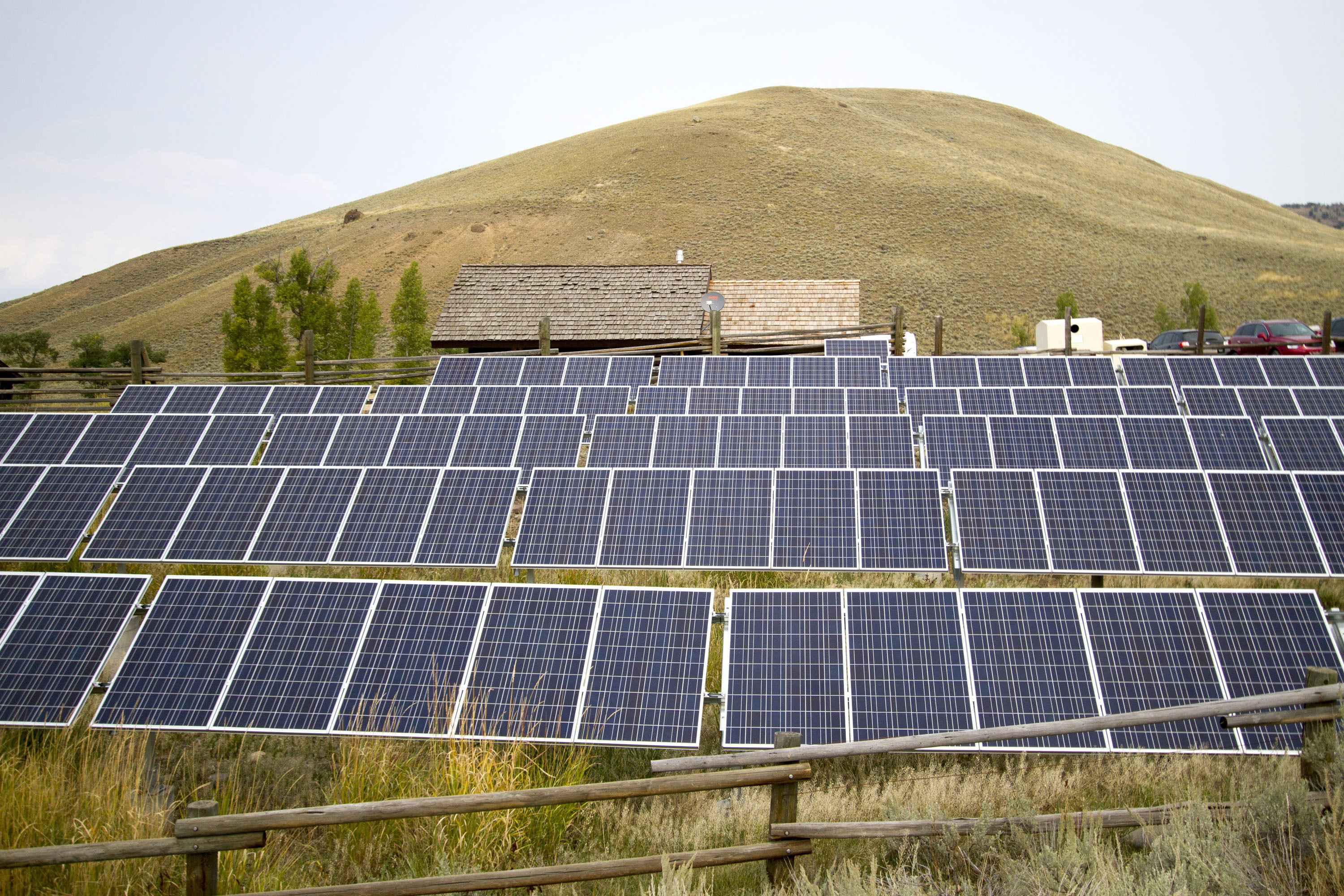 Fossil Fuels Requirement This Aug. 27, 2015, file photo shows a solar power array that is part of sustainability improvements at the Lamar Buffalo Ranch in Yellowstone National Park, Wyo. In recent years, huge solar and wind farms have sprouted up on public desert land in the Western United States buoyed by generous federal tax credits. A group of lawmakers in the most Republican statehouse in the country is bucking the nationwide trend toward stricter renewable energy requirements with a plan to do the opposite: Require utilities to get their electricity from fossil fuels or face fines.