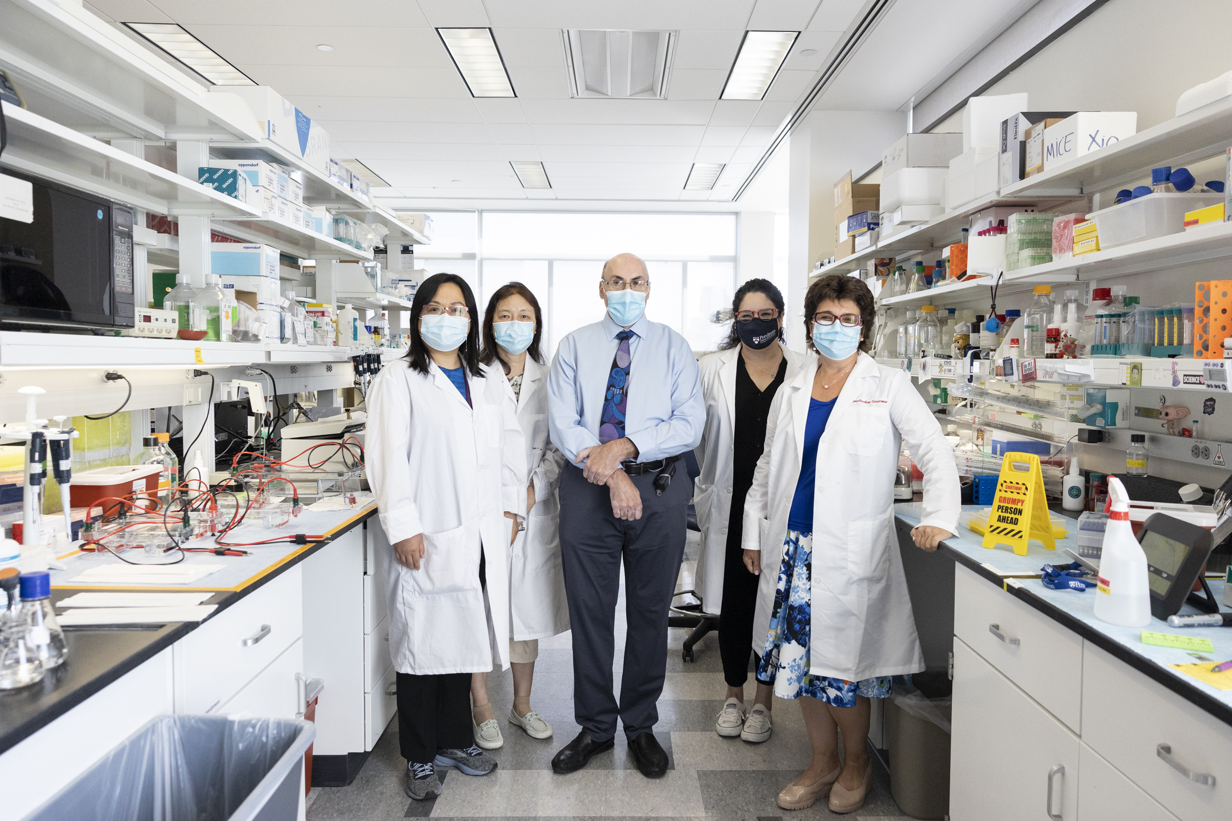 Weissman, center, with his lab team in August at the University of Pennsylvania. From left, Dr. Qin Li, Houping Ni, Dr. Xiomara Mercado-López and Elena Atochina-Vasserman. (Rachel Wisniewski for The Washington Post)