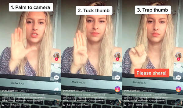 The signals - a mix of three hand gestures that convey "violence at home," "I need help," and "domestic violence" - have spread on TikTok as a means to help victims of abuse.