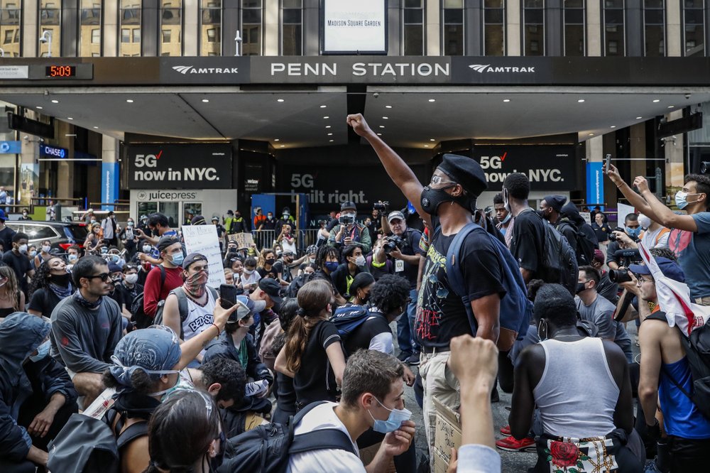 - Protesters take a knee before a moment of silence outside Penn. Station & Madison Sq. Garden, NY, June 3, 2020.