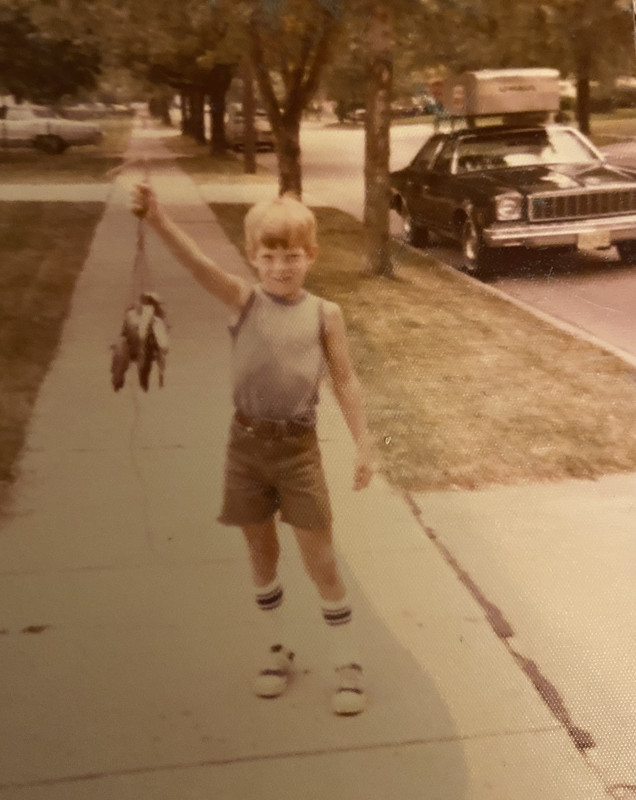 Picture of me, around age 8 or 9, and the suburban sidewalks that I ran around as a baby.