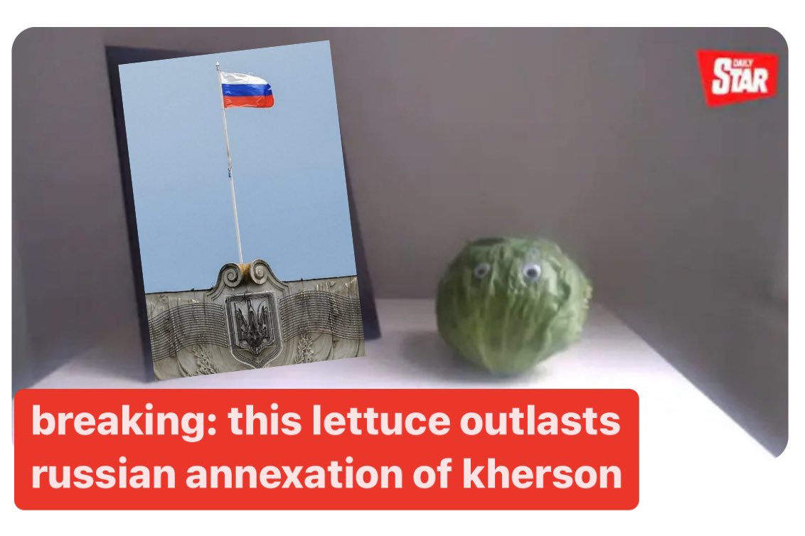 Breaking: This lettuce outlasts Russian annexation of Kherson, reads a meme posted a few hours after Russia announced its retreat from the city of Kherson.