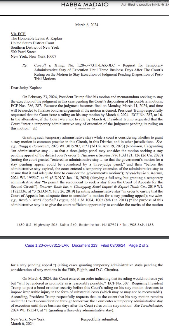 In court filings Tuesday, Trumps lawyers said Kaplan erred when he stopped Trump from testifying about his own state of mind and when he gave an erroneous jury instruction on the definition of common-law malice. Trumps lawyers said the jury should have been told they needed to find that it was Trumps sole, exclusive desire to harm Carroll.