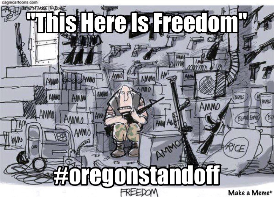 Militia movement: people who demand guns, freedom, and liberty working around the clock to forfeit exactly those things. #Oregonstandoff