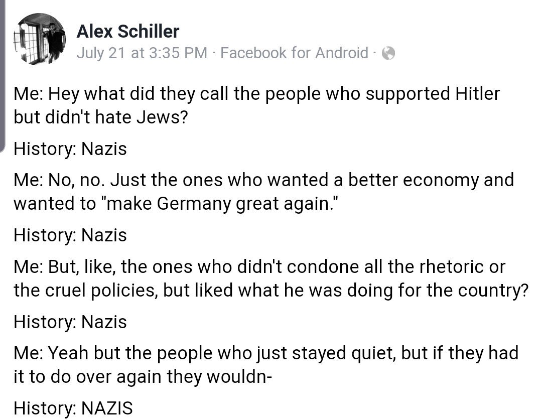 (34,661 posts)they were called the Bundt or Bund depending on were you lived during the late Thirties and early forties. Same shit and same smell. Sad to say,Grand Children of those folks are now are Neo Nazi's and Right wing militia's.