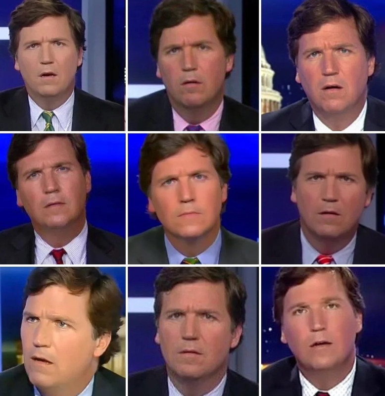 I remember Tucker from his Crossfire days on CNN and he didn't look like that all the time back then. I guess he made adjustments for his Fox audience, who probably look confused and befuddled all the time. "Oh look, Tucker is just like ME!"