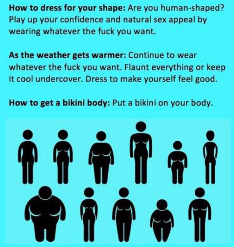 (5,210 posts)How to get a bikini body -- put a bikini on your body.