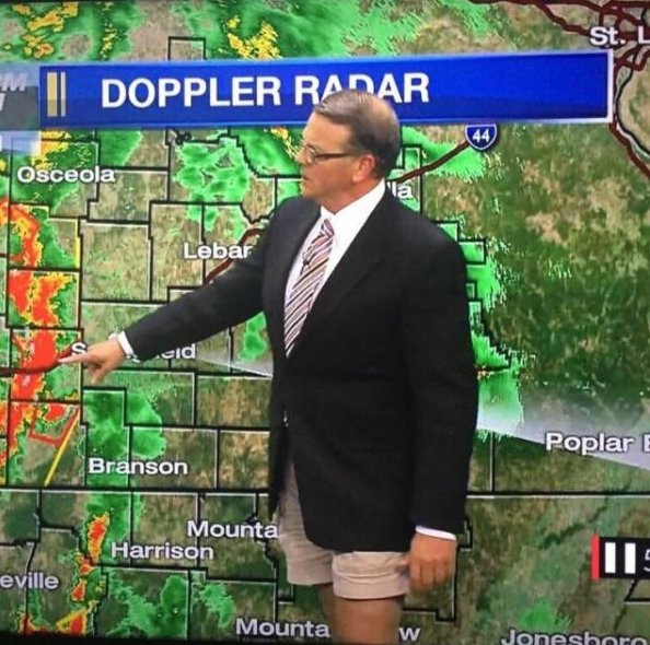(34,661 posts)there was a camera shot of the Sports Guy at WCCO TV dressed similar with Sport Coat shirt tie and Shorts with flip flops.