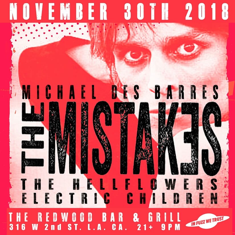 He has a new band called The Mistakes, and their live debut is tonight at the Redwood Bar in Los Angeles.