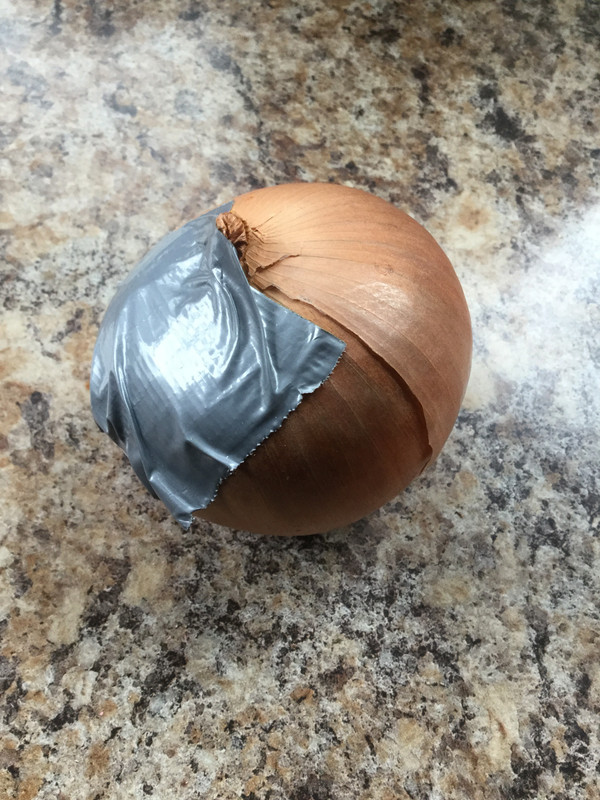 Yesterday, when we were unloading groceries, my husband accidentally dropped an onion on the floor and the skin broke open.