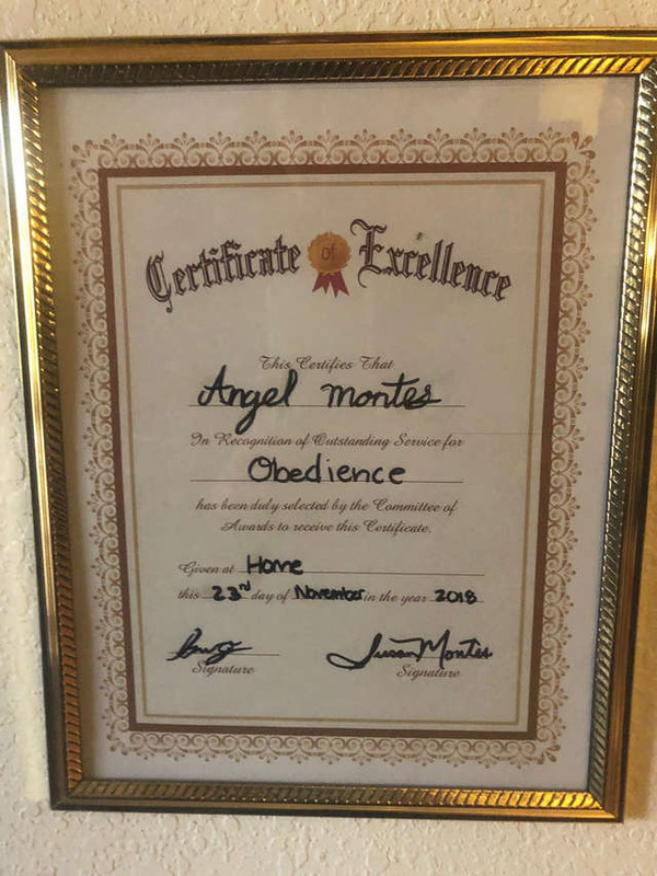 Last year, Mariah Cervantes' grandma enrolled the dear dog in an obedience training course. Evidently though, for whatever reason, Angel just didnt take to it.