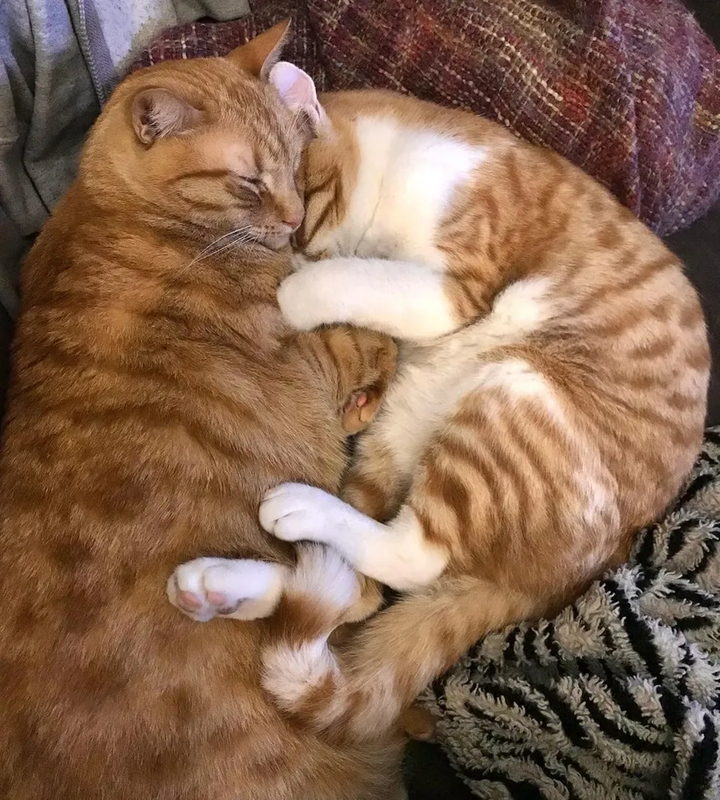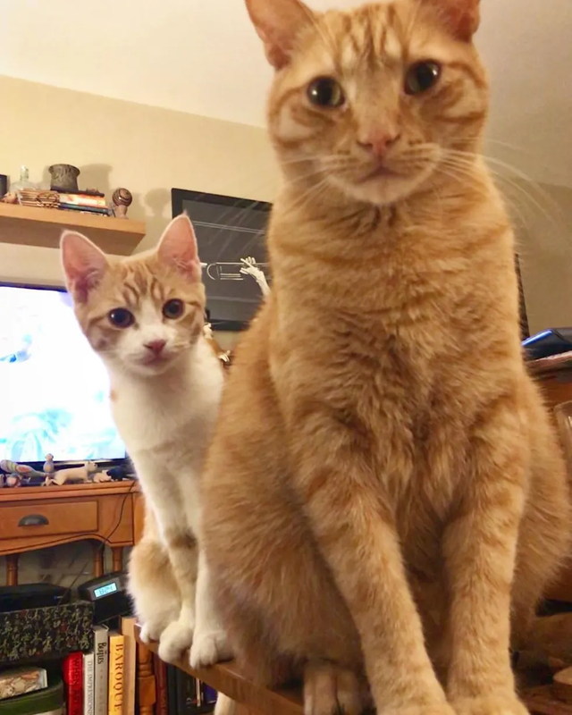 With Ollie by his side, the little former stray has grown into a confident, sassy cat, mirroring his big brother.