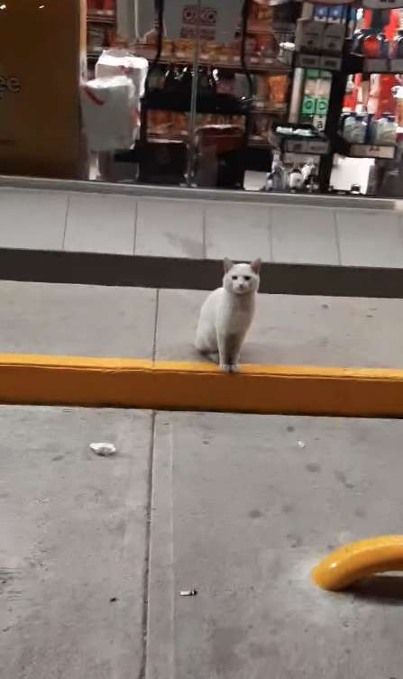 It was a white cat, sitting all alone. But his presence there was far from random.
