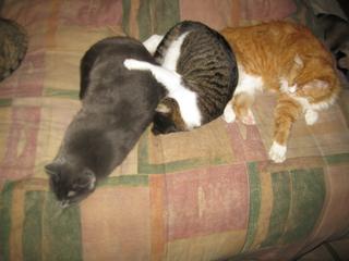 Phoebe and Miko having a moment on my lap.