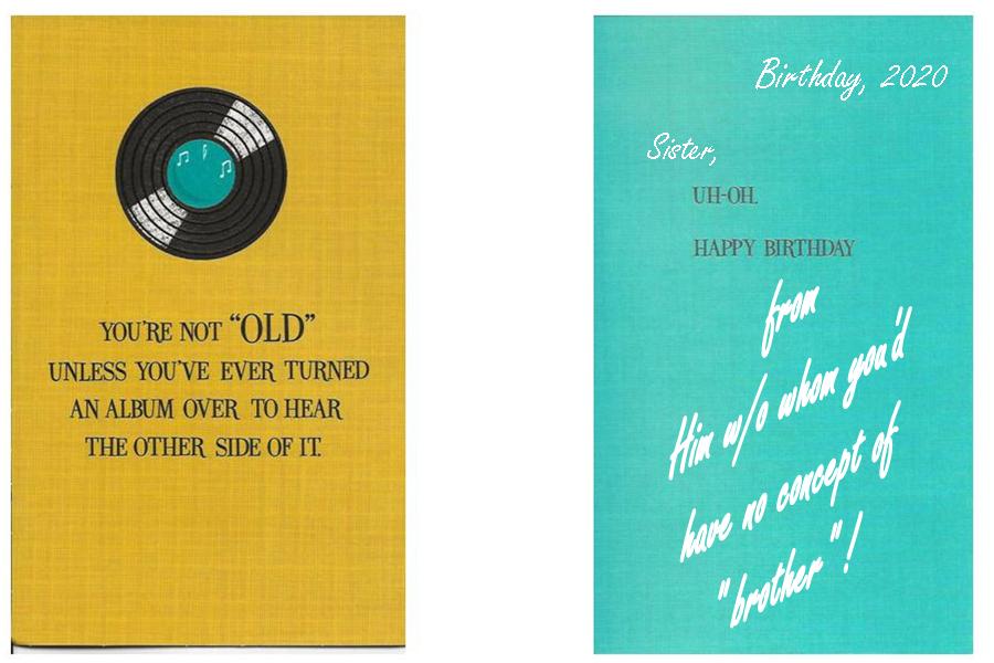 Speaking of vinyl, 80 yr old sister's birthday card this year (Original Post) UTUSN Apr 2020 OP