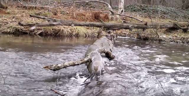 Despite their differences, every kind of animal imaginable has used the log to cross the river, from ducks