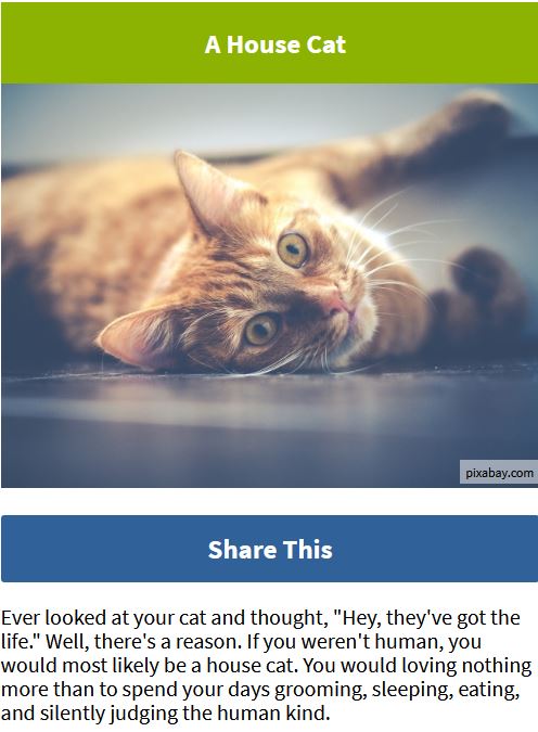 I kid you not - took the quiz and came up with this (and I'm a cat lover, so it's a perfect match)