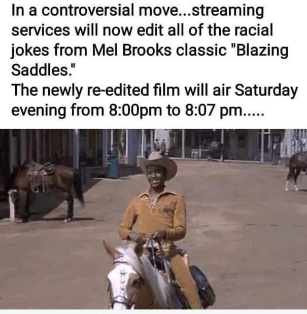 (2,369 posts)Blazing Saddles is a brilliant indictment of racism written by RICHARD PRYOR. The whole point of racist language in it was to skewer racists. Buy a copy and enjoy it.