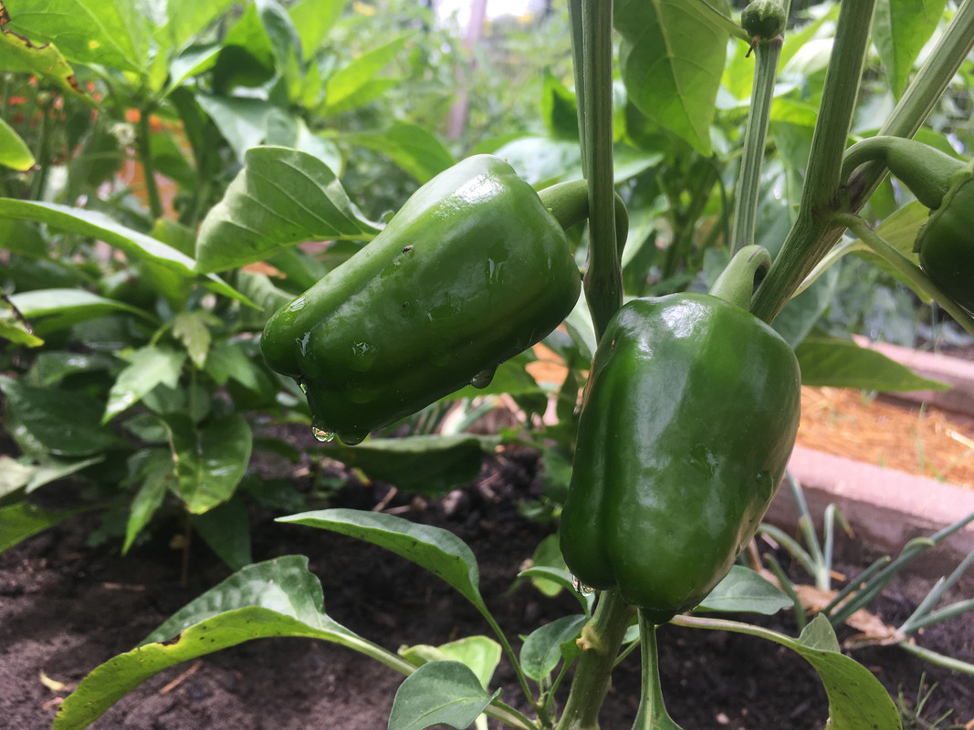 Red and yellow peppers, Roma tomatoes in the bed. Cherry tomatoes in the buckets snacks when were down there. Bed in the back is Broccoli and Cauliflower.