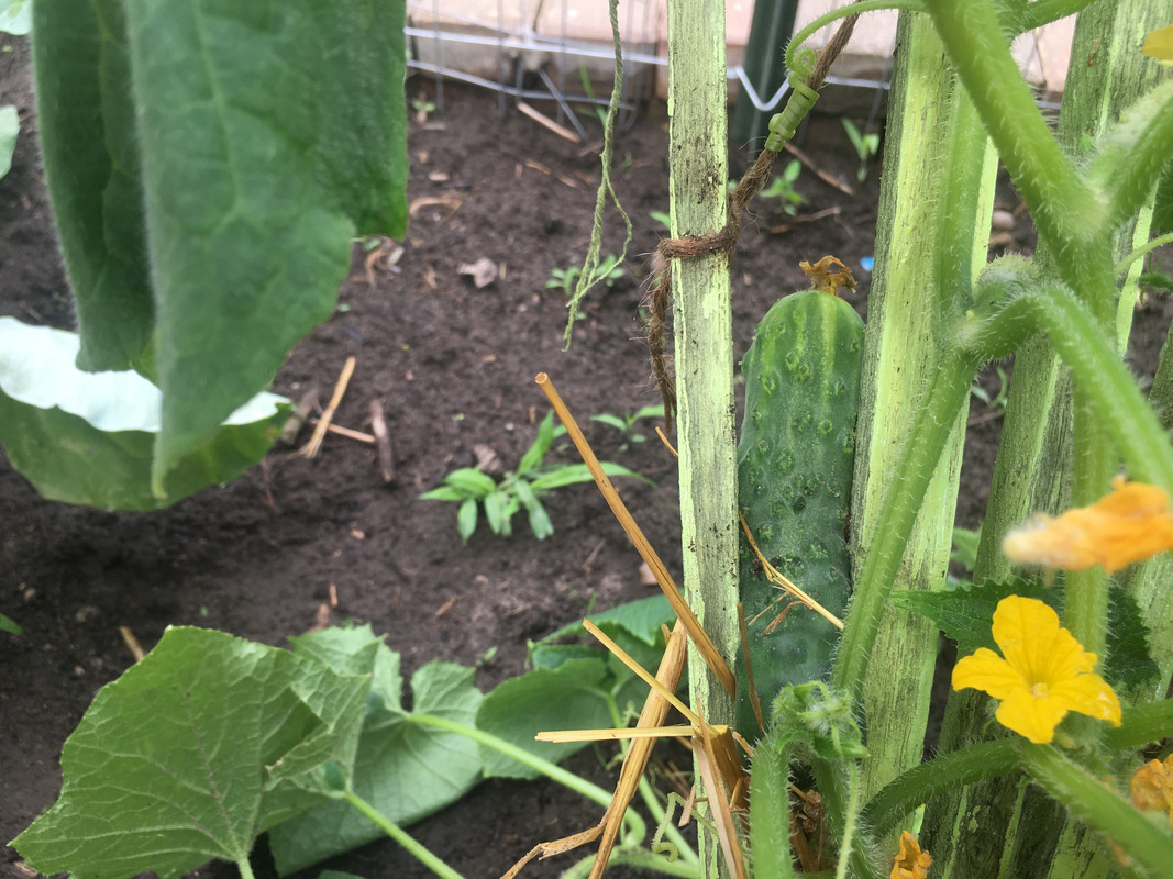 Cucumber got stuck in the trellis. It was rescued...well in the salad tonight.