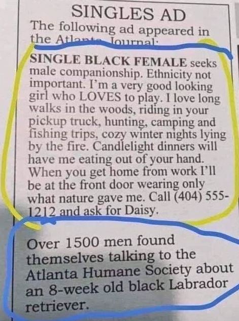 (2,458 posts)10. There's lots of lonely people out there...especially now! Animals can be an excellent substitute