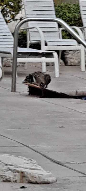 Actually, only ma was in the pool. Animal control won't help save these families. If they are left alone, the chicks will drown. But if you remove them, they will jump back in the pool. So this is my homemade ramp for them. I've spent 2 months chasing ma & pa duck away. And now I'm making them comfy in our pool we want to swim in.