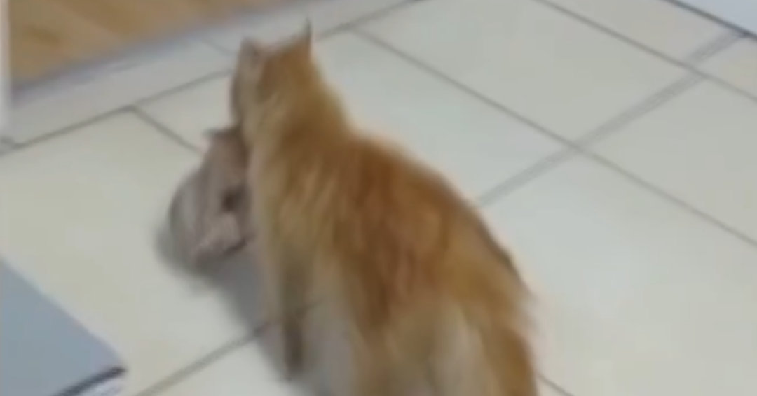 Amidst the hustle and bustle of the hospitals morning shift, a thin, bright orange stray cat was weaving her way through the white-tiled lobby. Carried gently in her mouth was a young kitten, almost a newborn.