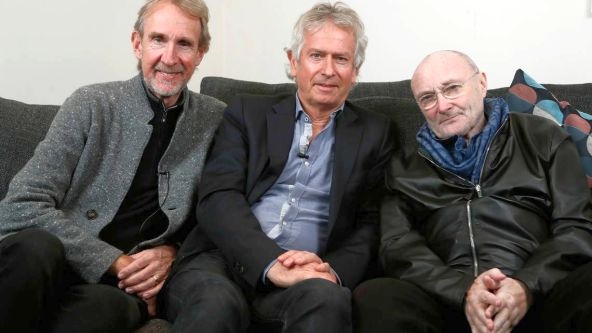 Genesis band members from left, Mike Rutherford, Tony Banks, and Phil Collins