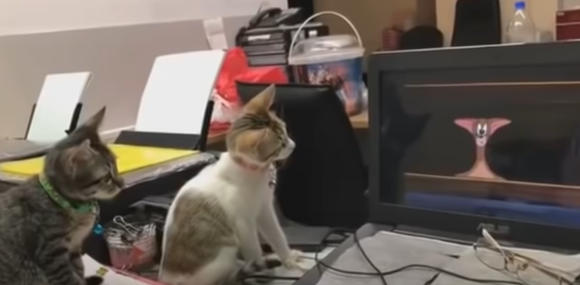 Check out these cartoon-binging cats in the video below:
