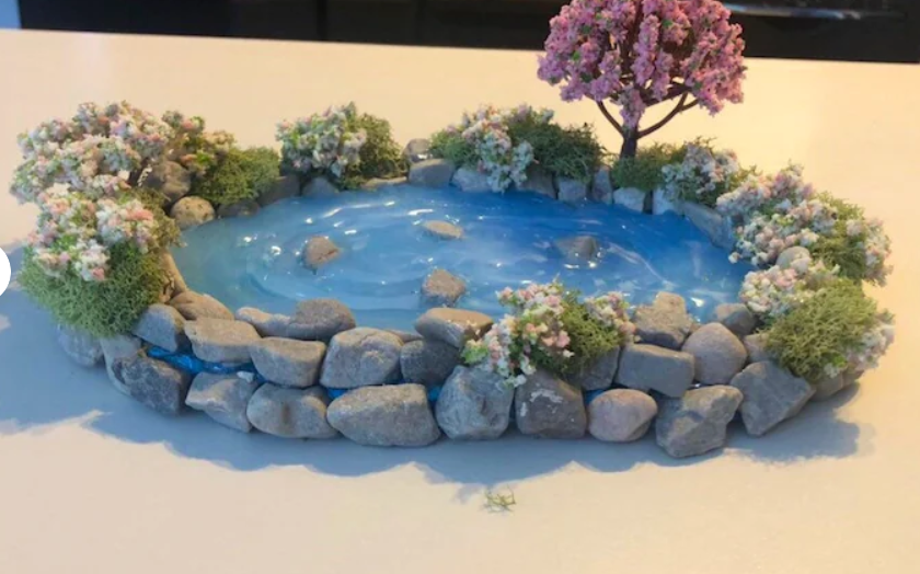Technically, I'm trying to build a small ground level pool for birds and toads. I am going for natural materials, like rocks and real moss. Where I'm having trouble is finding a material that can bond the rocks together and create a water-tight saucer-shaped pool. I have already researched it and I know I can resort to 100% silicone, because it's aquarium safe. And if it's safe for fish, it should be safe for everything else. But I've worked with silicone before and I want something that will cure into a hard, clear material, and silicone is always rubber-like.