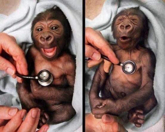 Newborn baby gorilla at Melbourne Zoo gets a checkup at the hospital and reacts to the coldness of the stethoscope! 🥺
