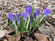 The snow crocuses have made their appearance! One day they're not there, and the next, they miraculously are. You never see their little foliage spikes or their buds, they just appear seemingly out of nowhere, unlike all the other early flowers. And no matter how ugly the weather is in succeeding days, even if it snows, they survive it.