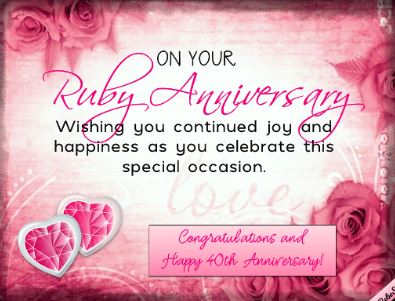 (64,371 posts)you've paid it forward. Happy 40th anniversary, your ruby year, traditionally.